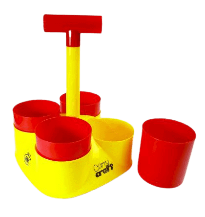 - Portable desk top tidy for safer storage of pencils, scissors or brushes