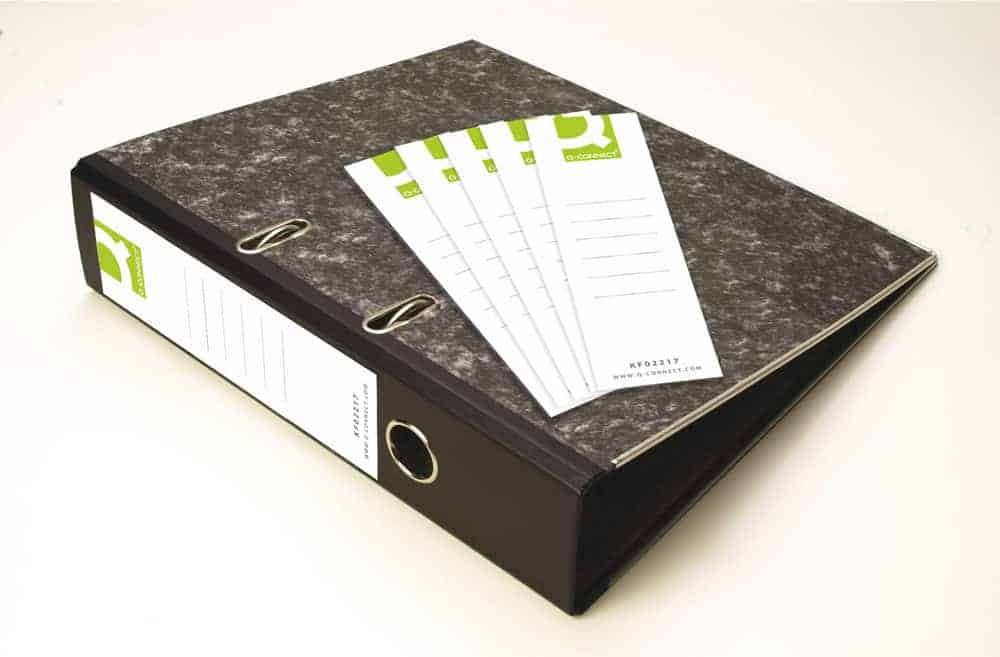 - Self adhesive spine labels for clear identification of files